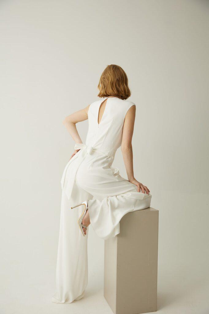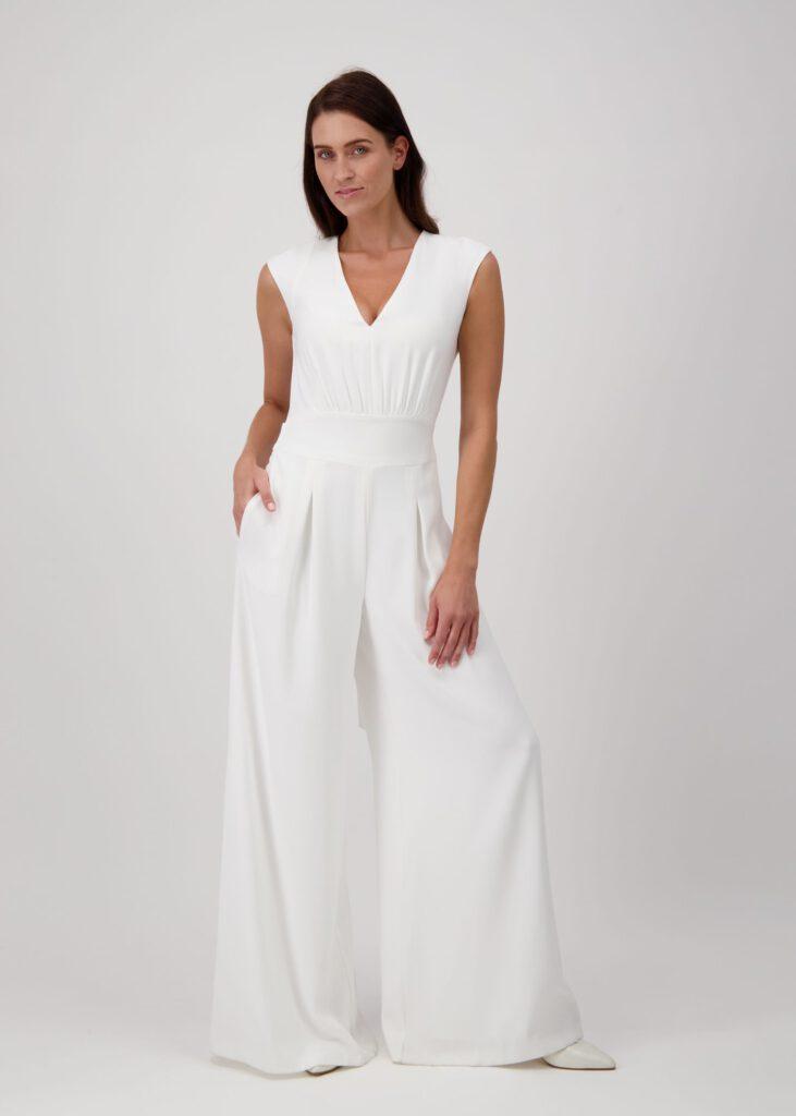 Neben den klassischen Brautkleidern werden Jumpsuits und Brauthosen immer beliebter. Und das zu Recht, denn das sieht nicht nur richtig stylish aus, sondern ist auch sehr bequem. Ein tolles Oberteil dazu – und schon ist das perfekte Brautoutfit fertig!